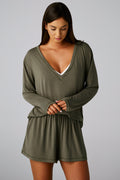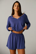 Ovaj lagani set sastoji se od majice na dug rukav i šortsa od laganog materijala, koji je idealan da se osećate prijatno i rashlađeno u letnjim danima. Materijal je prozračan i izuzetno prijatan, što znači da se u Sunday setu možeš potpuno opustiti i uživati u bilo kojoj aktivnosti, bilo da je ovaj set tvoja pidžama, kućna uniforma ili set za plažu.