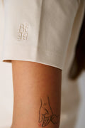 Majica dolazi u krem, beloj i crnoj boji. Na levom rukavu smo dodali detalj, BÉBÉ logo u boji majice.